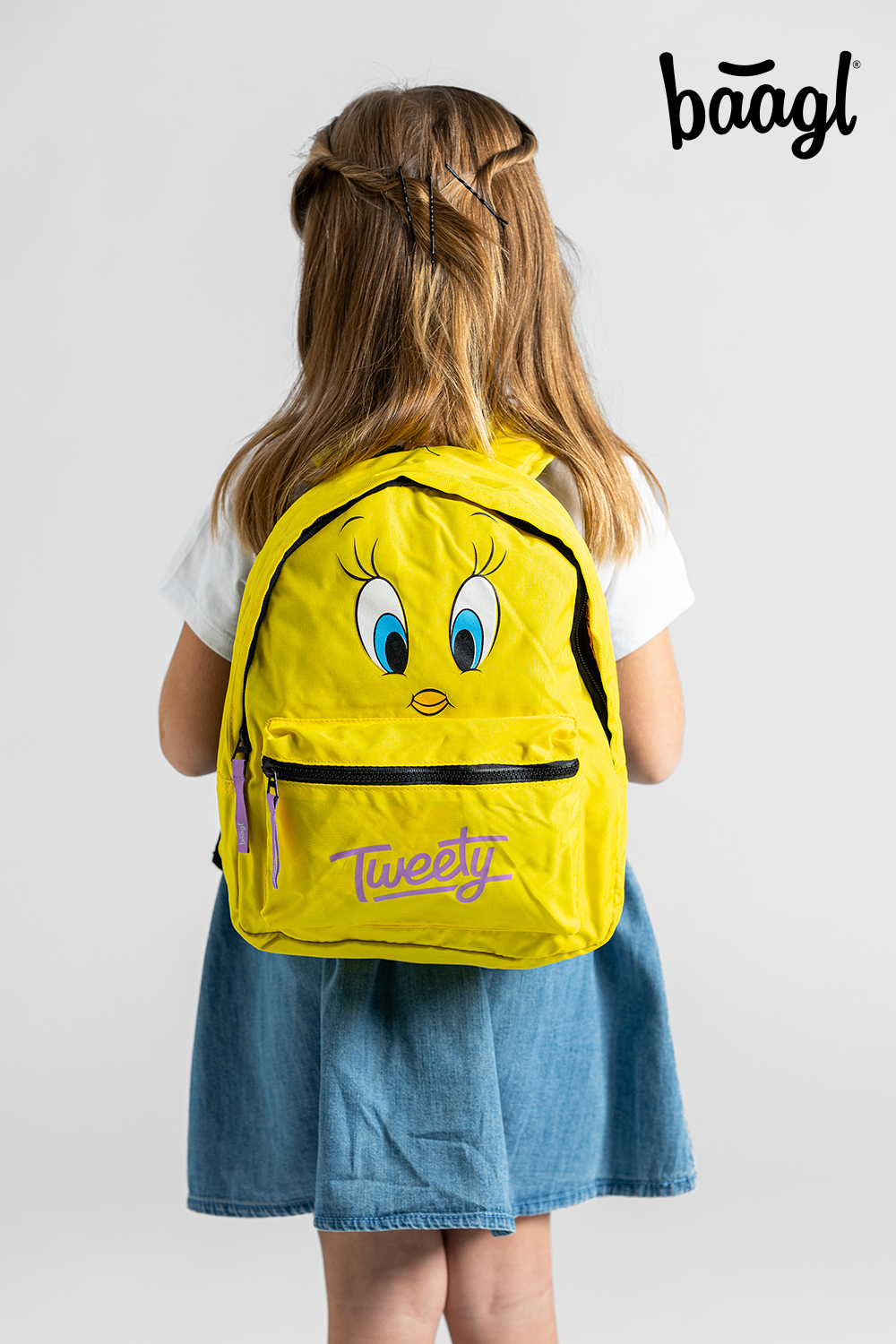 Předškolní batůžek s kuřátkem Tweetym bezpečně uschová pití i svačinu — ideální pro malé dobrodruhy na cestu do školky nebo na výlet.
