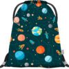 Sáček s motivem planet je ideální pro předškoláky na přezůvky, cvičky nebo jiné drobnosti. Vyrobený z pevného a omyvatelného materiálu, nabízí praktické zdrhování pomocí pevných tkanic, které zároveň umožňují nošení na zádech. Jeho rozměry 36 × 30 cm poskytují dostatek prostoru pro všechny potřebné věci. Díky veselému designu se stane oblíbeným doplňkem každého malého dobrodruha.
