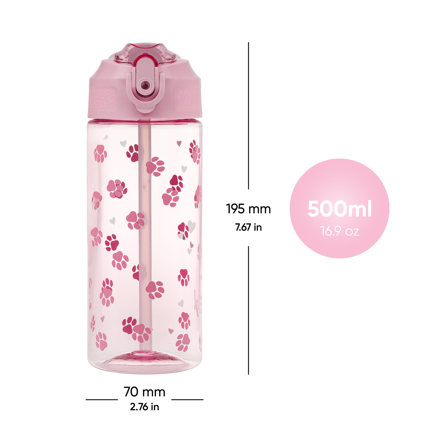 - Hravý potisk s tlapkami – Růžová láhev s roztomilým motivem tlapek uhasí žízeň všem malým školákům i předškolákům.