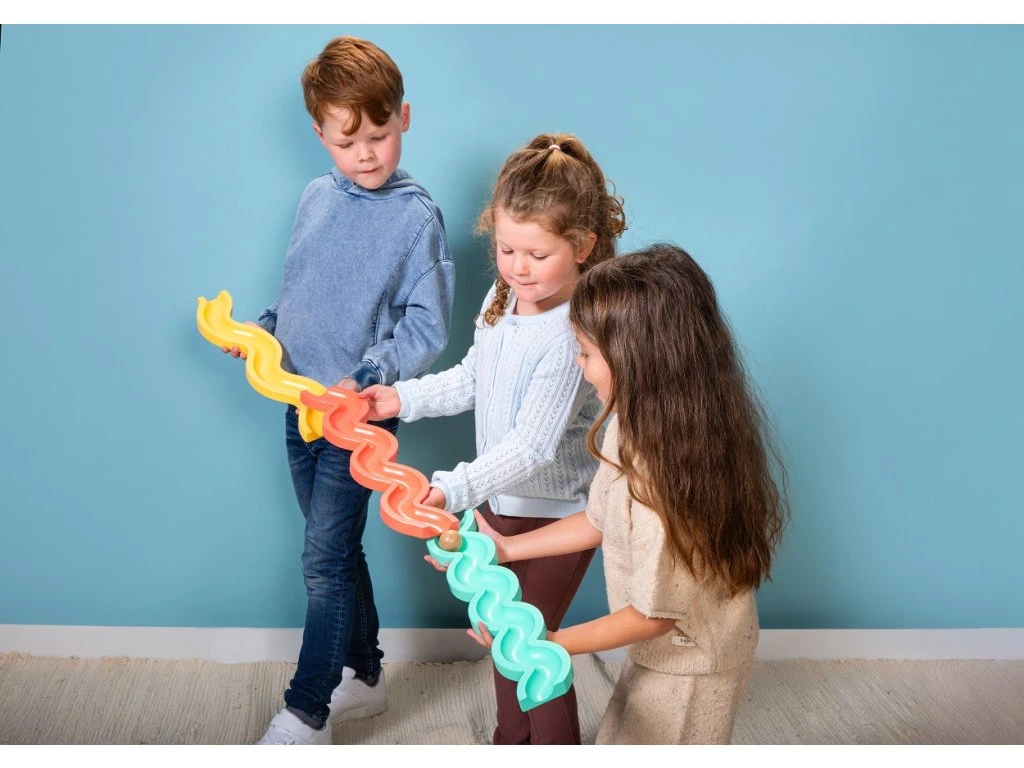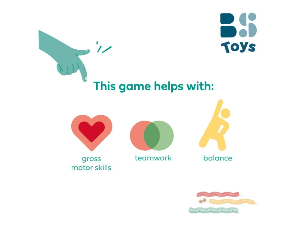 Zažijte zábavu a zároveň spolupráci s touto týmovou kuličkovou dráhou od BS Toys – skvělou hračkou, která promění sledování kuliček v aktivní společenskou hru. Děti od cca 4 let mohou společně pouštět kuličky po dráze, držet části trati a snažit se udržet kuličku plynule v pohybu bez pádu, což podporuje jejich týmovou spolupráci i dovednosti při hře.