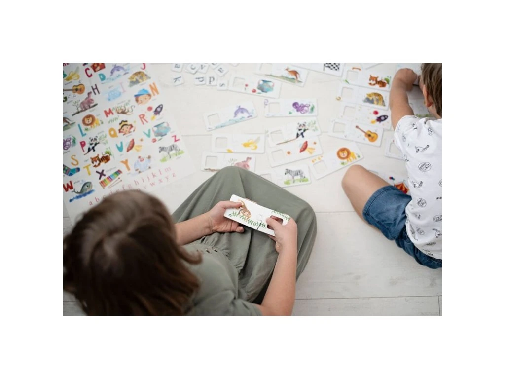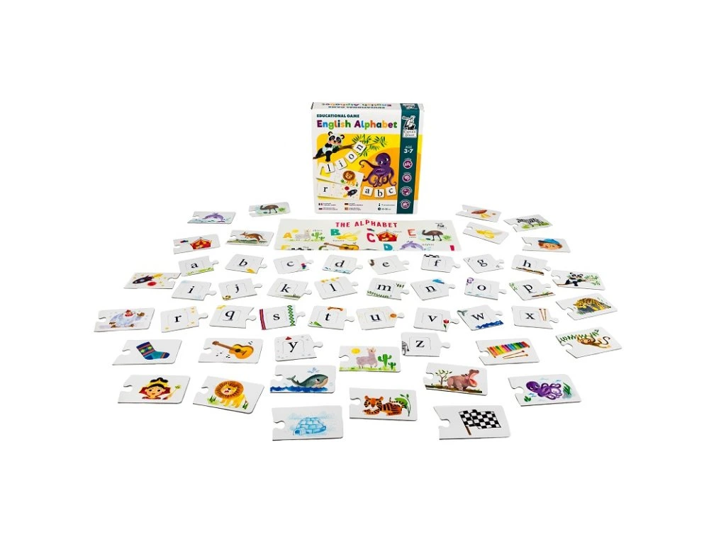 Tato hravá a vzdělávací sada je ideální pro děti od 3 let, které se chtějí seznámit s anglickou abecedou. Písmena jsou snadno zapamatovatelná díky ilustracím a asociacím, které dětem pomáhají propojit písmena s významy slov. Hra podporuje rozvoj slovní zásoby, koordinace oko–ruka i paměti a zároveň podněcuje děti k tvoření vlastních hádanek a slov.