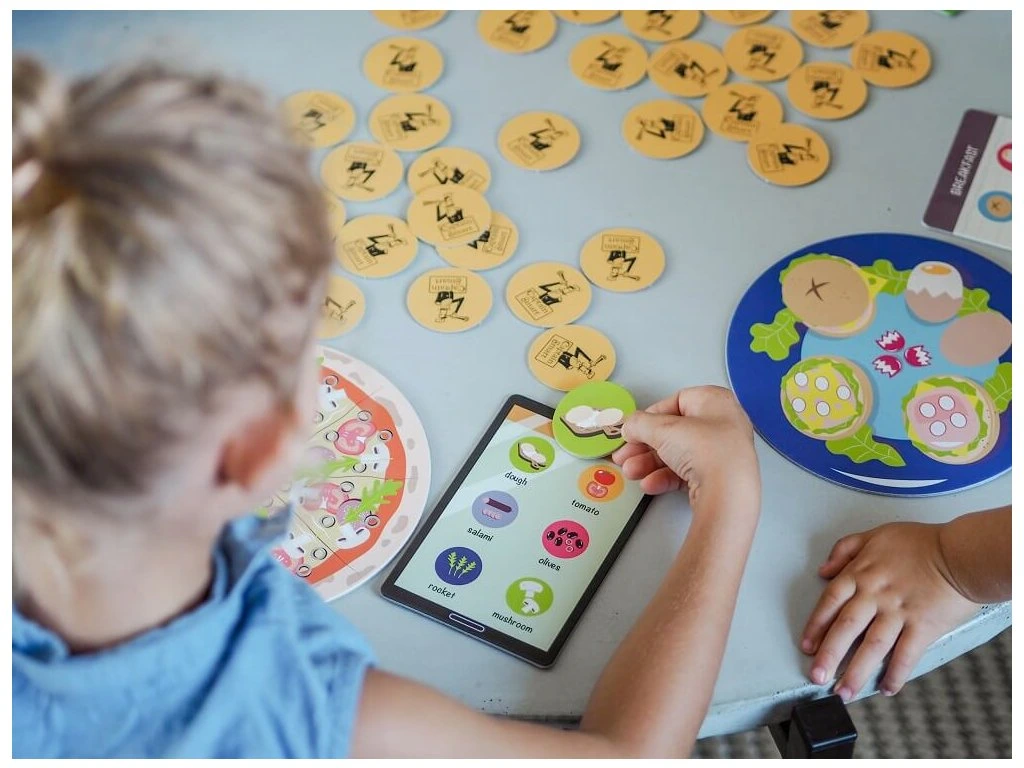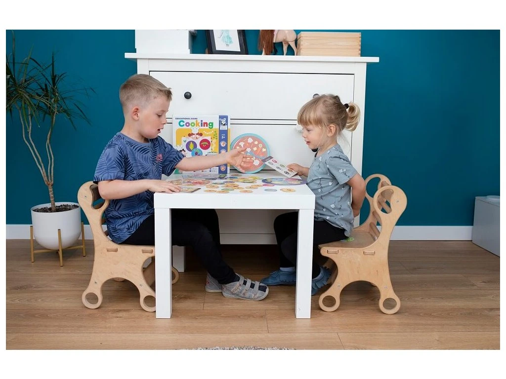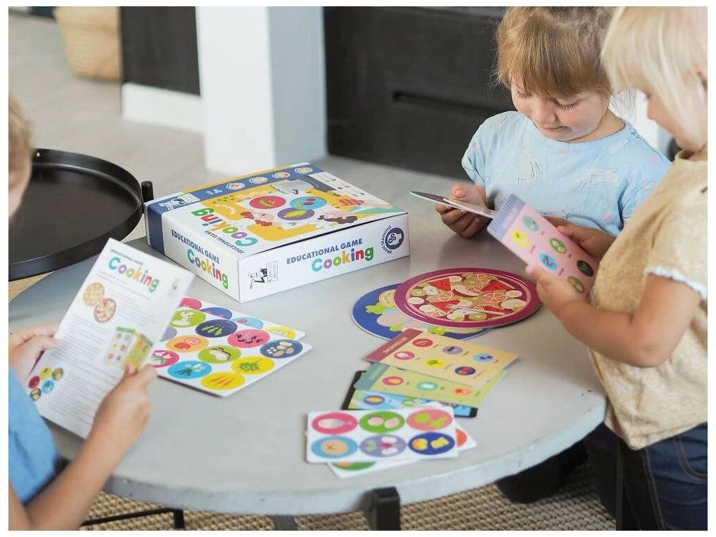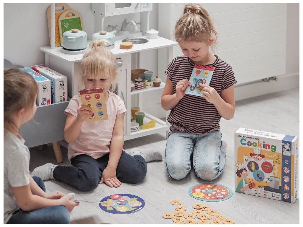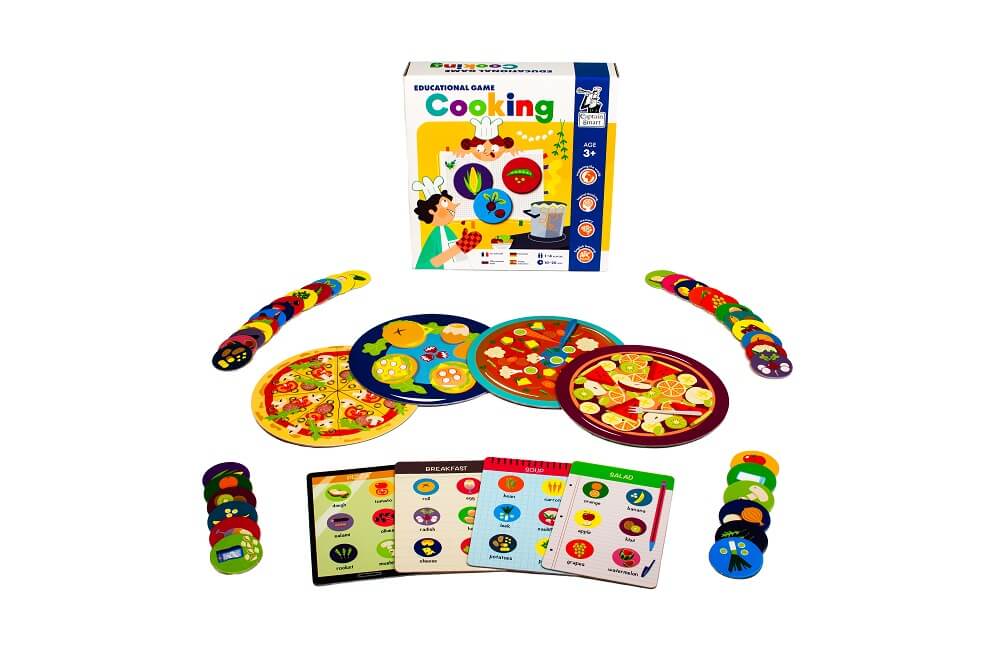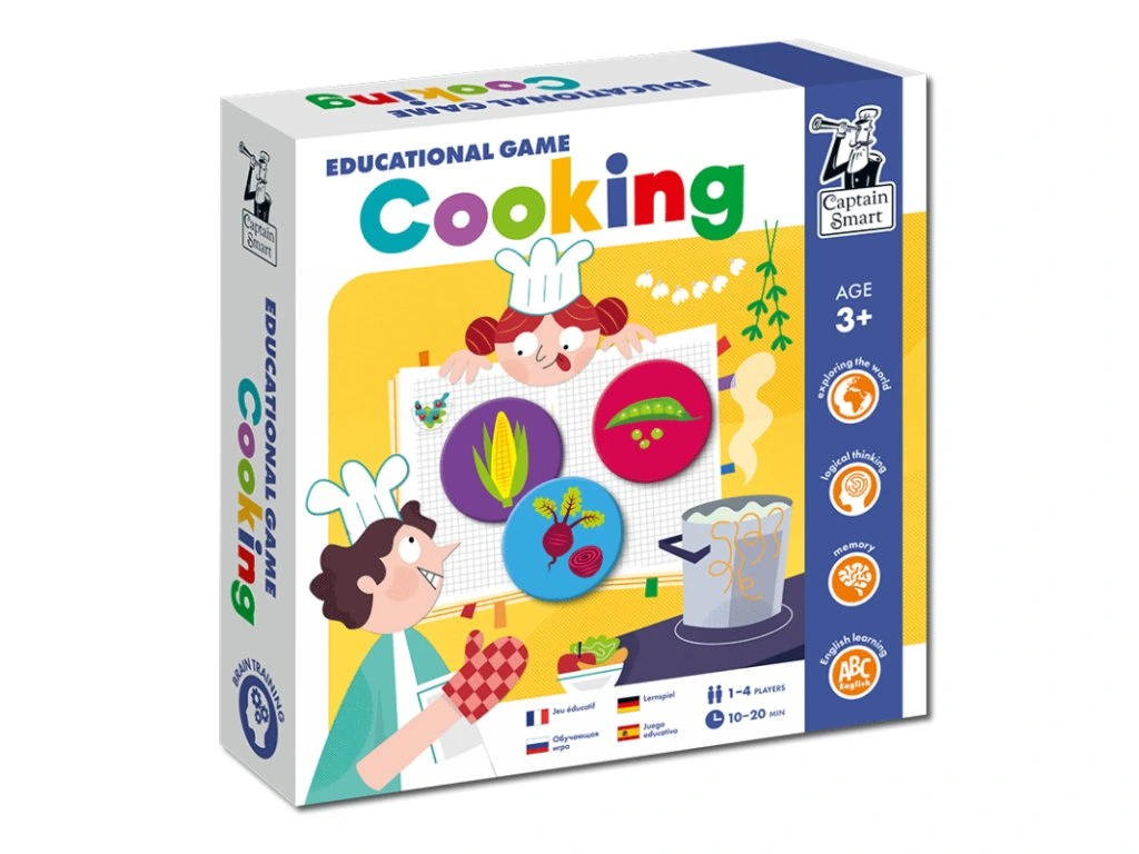 Zábavná a vzdělávací hra, ve které si děti procvičí logické myšlení a naučí se, z čeho se skládají oblíbená jídla jako pizza, polévka nebo hamburger. Pomocí seznamů a žetonů sestavují správné kombinace surovin a přitom si rozvíjejí paměť, pozornost i slovní zásobu. Hra podporuje poznávání potravin, učí děti základům vaření a hravou formou je seznamuje i s anglickými výrazy. Ideální pro 1 až 4 hráče od 3 let. Jedna hra trvá přibližně 10–20 minut.