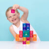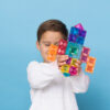 • Zlepšuje jemnou motoriku a koordinaci – manipulace s různě velkými dílky, zapojování magnetických spojení a otáčení mini-čtverců vyžaduje přesnost a trpělivost.