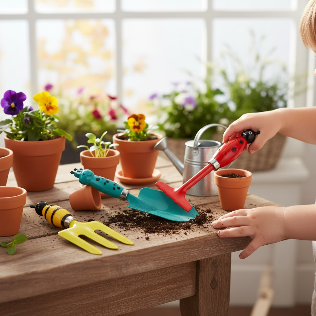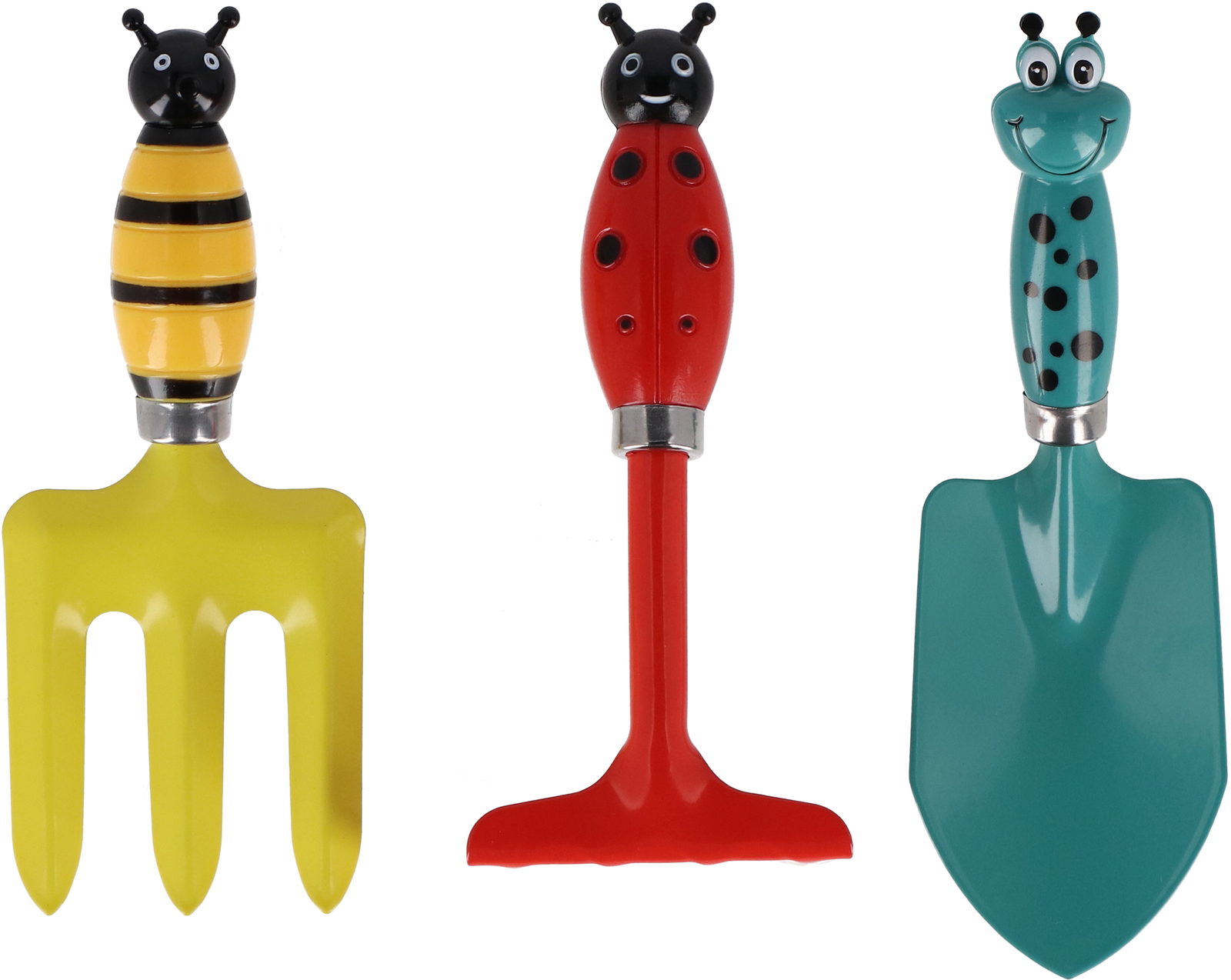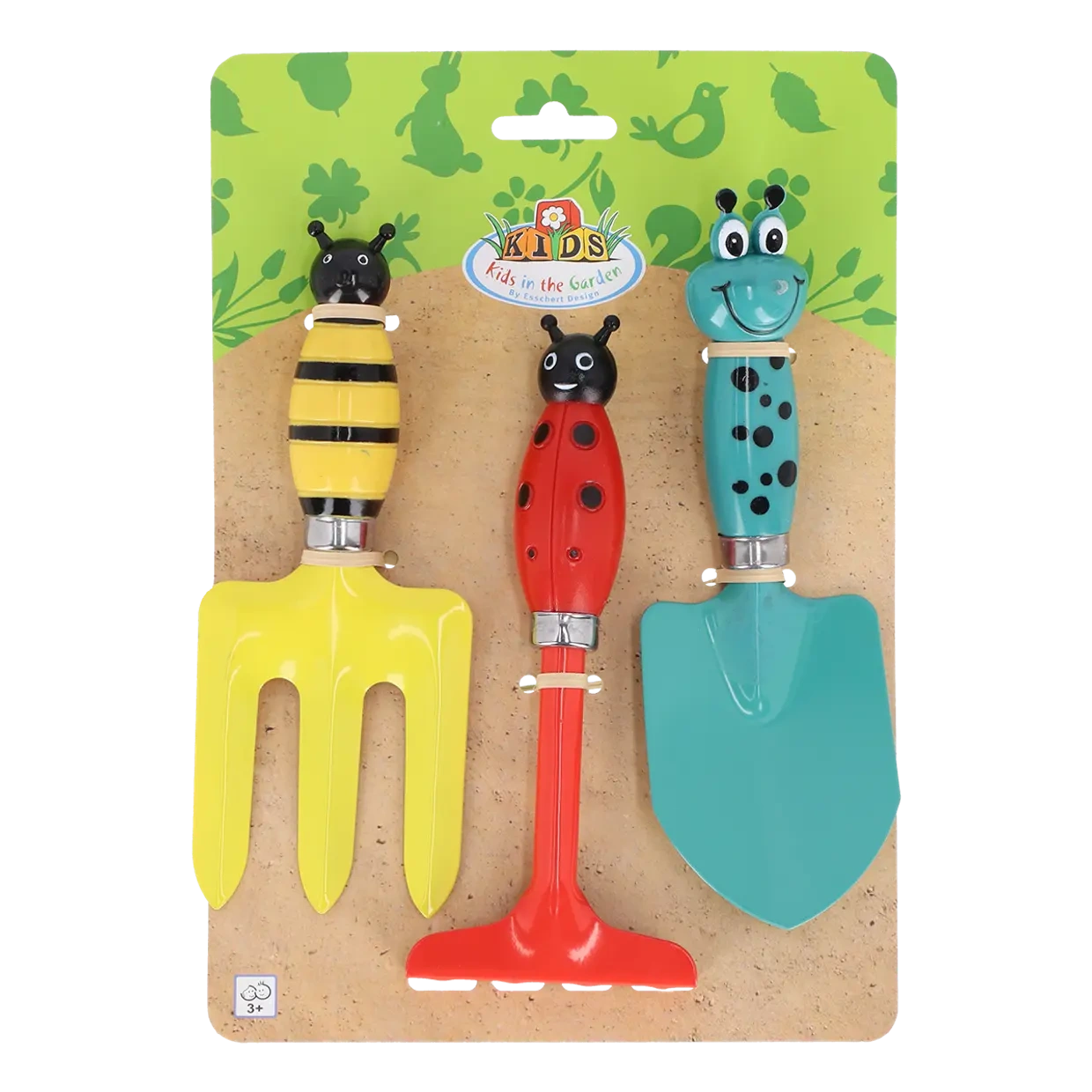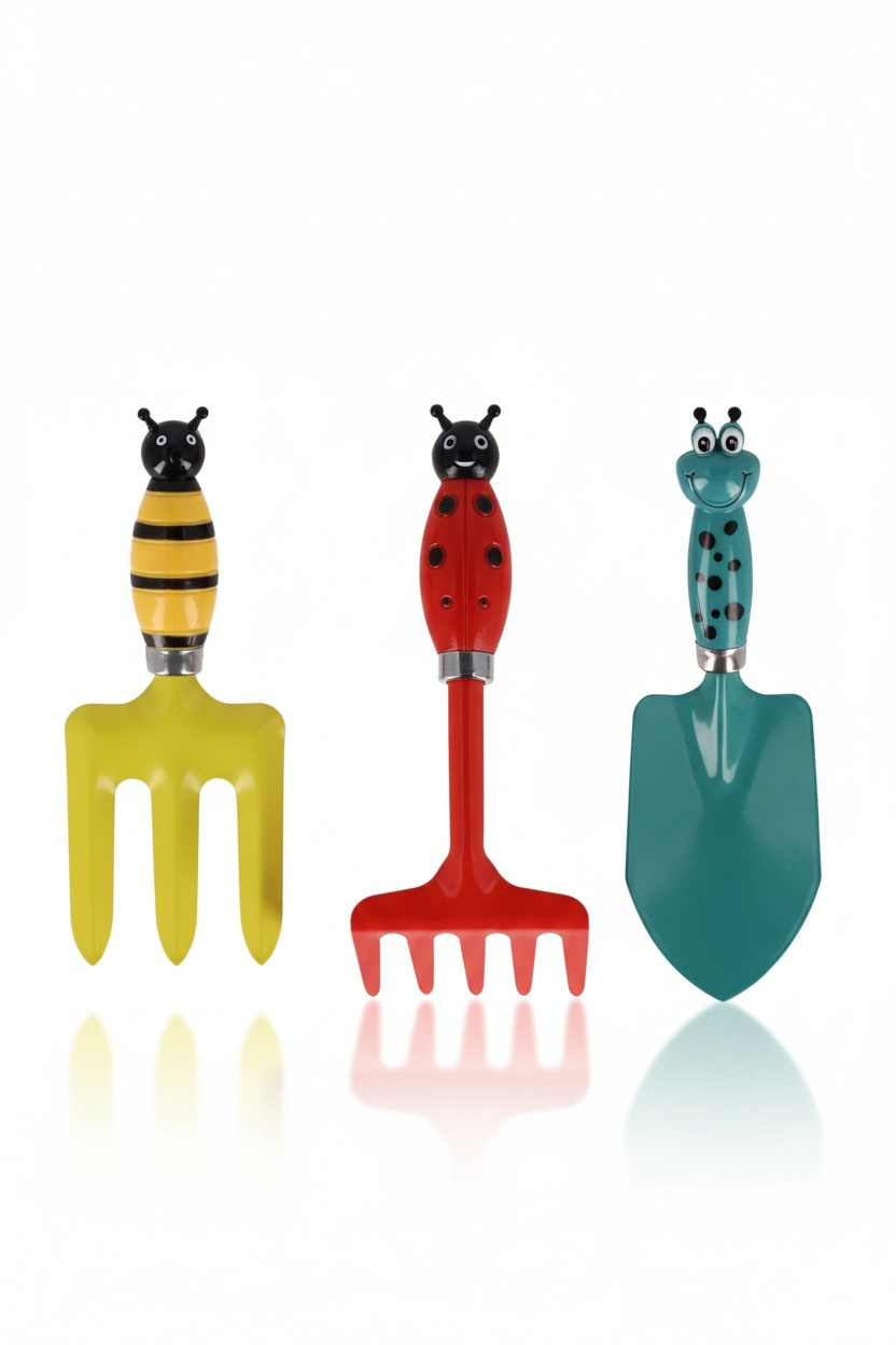 Nářadí je přizpůsobené dětským rukám, takže se dobře drží a snadno se s ním pracuje. Kovová pracovní část zajišťuje odolnost, zatímco motiv hmyzu dodává nářadí hravý a přírodní vzhled. Děti si tak přirozeně budují vztah k přírodě a učí se péči o rostliny.