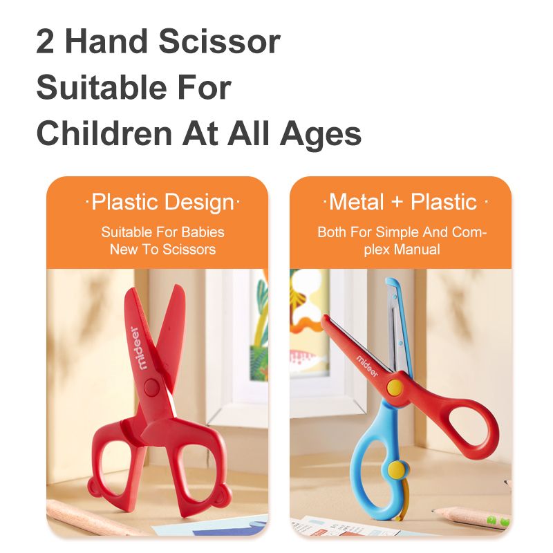 Barevné dětské nůžky se zaoblenou (kulatou) špičkou — celoplastové provedení. Vhodné pro praváky i leváky, což zvyšuje jejich praktičnost ve třídě i doma. Vyrobeny renomovanou značkou Mideer, známou svou bezpečností a kvalitou.