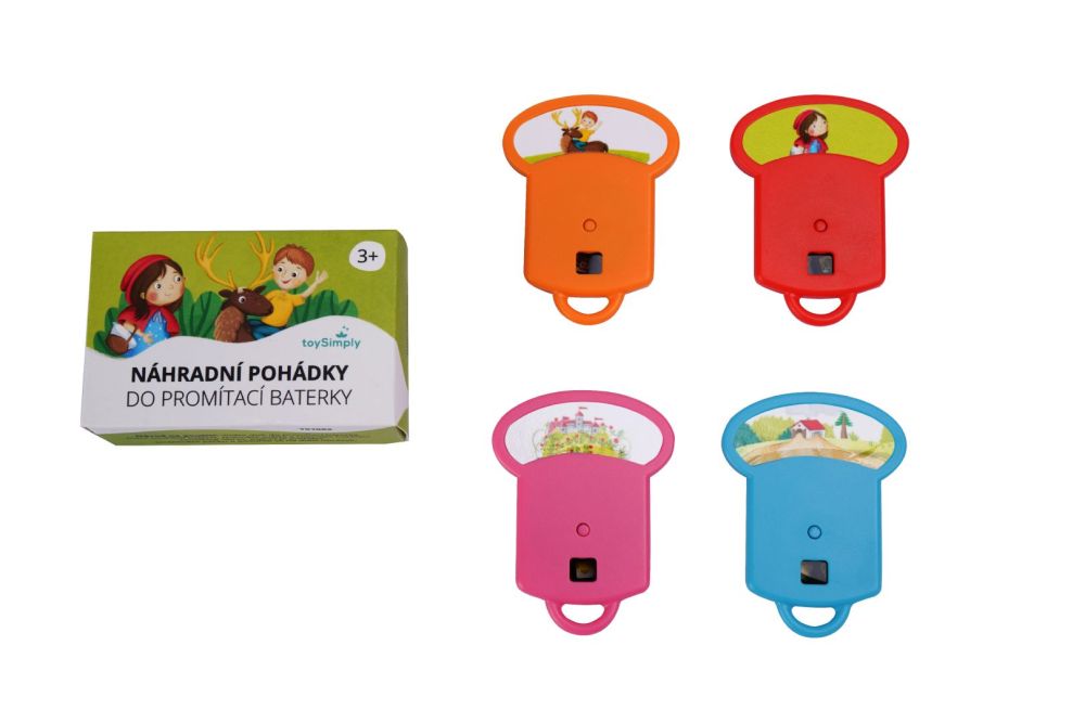 Doplňte kouzlo vyprávění pohádek s náhradními disketami pro promítací baterku ToySimply TS0001. Toto balení obsahuje 4 klasické české pohádky, každá s 8 barevnými obrázky, které ožijí při projekci na stěně či stropu. Diskety jsou kompatibilní výhradně s tímto modelem baterky — nelze je použít s jinými verzemi. Kromě obrázků je součástí také brožurka s českými texty, která rodičům pomáhá příběhy vyprávět plynule a se zaujetím.