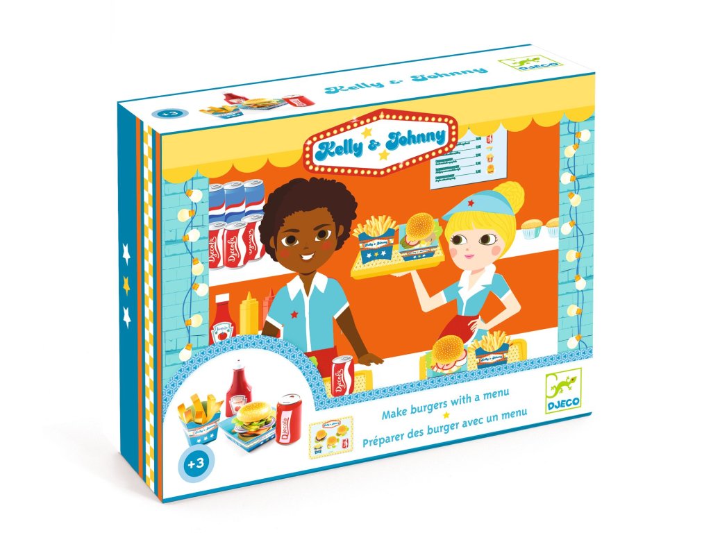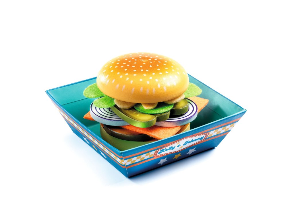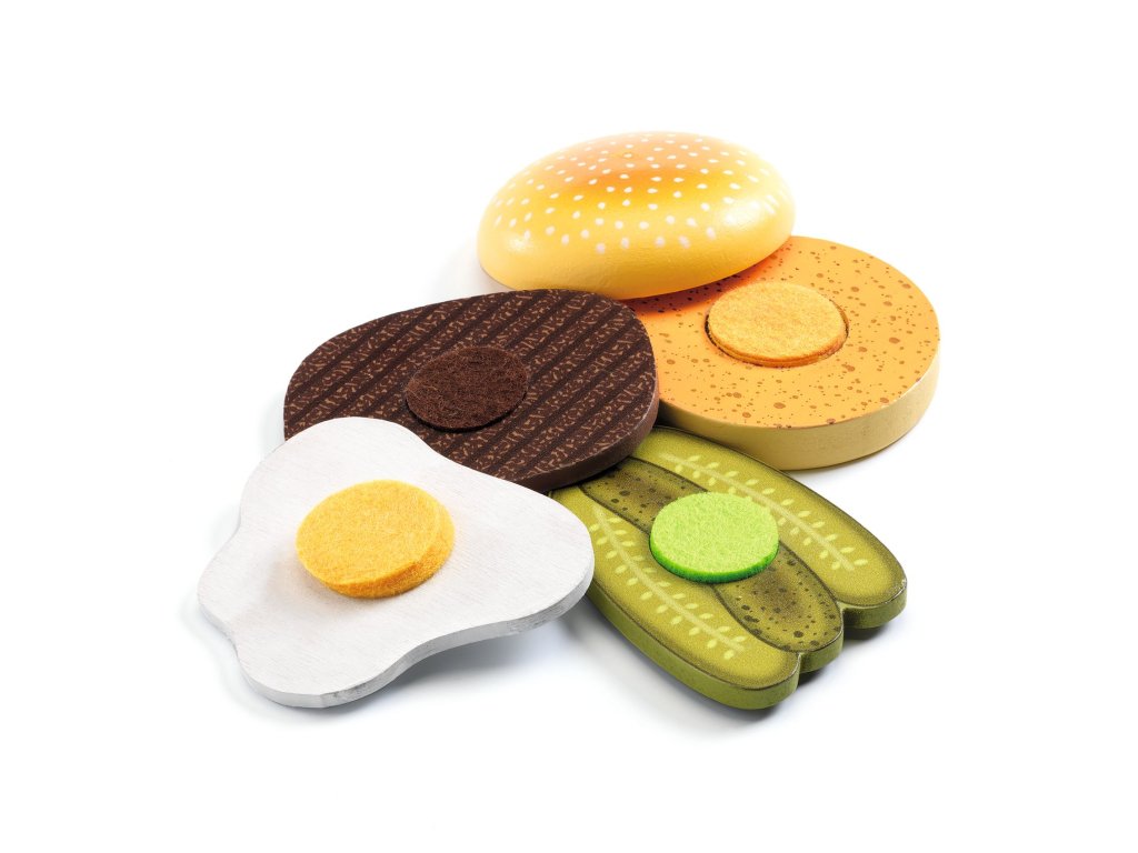 Praktická, malovaná krabička obsahuje veškeré příslušenství, které potřebujete k výrobě tří lahodných hamburgerů.