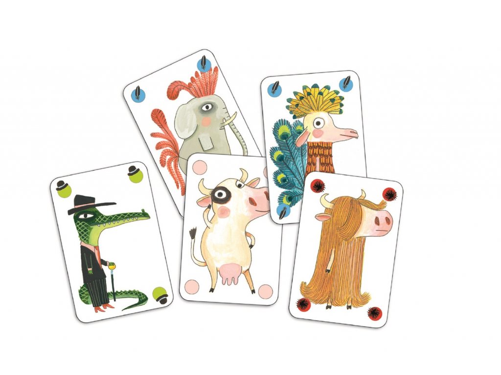 • 44 karet: 40 zvířecích (10 × chlupatý, 10 × nahý, 10 × opeřený, 10 × oblečený) + 4 tzv. žolíci/jokery.