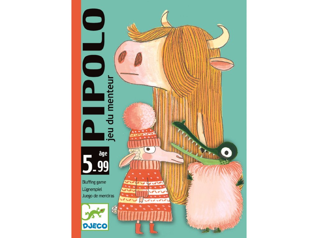 DJECO – Pipolo je veselá blafovací karetní hra pro děti od 5 let (a samozřejmě celou rodinu). Hráči postupně odhazují karty zvířátek a buď říkají pravdu, nebo blafují – ostatní mohou vyzvat: „Pipolo!“ V tu chvíli se rozhodne, kdo balíček vyhrává. Vyhrává ten, kdo se první zbaví všech karet. Hra trvá jen asi 10 minut, vejde se do kapsy a je ideální na cesty nebo jako rychlé doplnění zábavy.