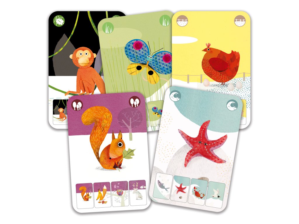 - Hráči sbírají čtveřice karet (kvarteta) s motivy zvířátek, která žijí ve stejném prostředí (např. džungle, polární oblasti, louka apod.)