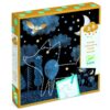 Vyberte si pozadí a šablonu se zvířátkem, které chcete odhalit. Potom upněte oba listy do praktického držáku. Pomocí děrovačky vytvořte dírky podle teček na šablonách. A pak to přijde – obrázek prosviťte baterkou nebo lampou a překvapení! Zvíře se objeví! Skvělá zábava od známého výrobce DJECO.