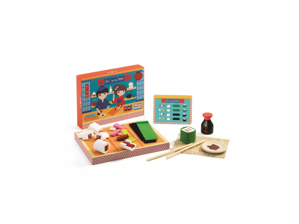 Krásný set pro malé šéfkuchaře od firmy DJECO. Praktické přenosné balení, spousta doplňků pro přípravu delikátní hostiny Sushi.