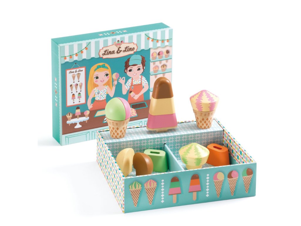 Dřevěná sada Lina & Lino – barevná zmrzlinárna pro malé cukráře