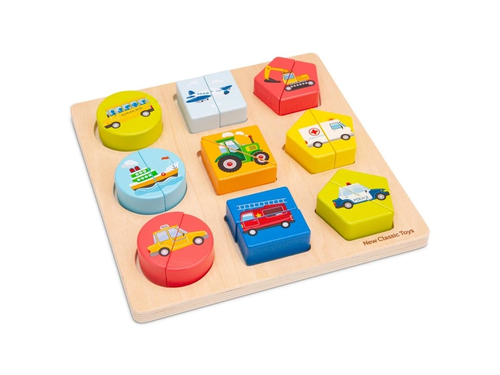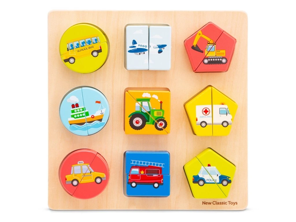 Dřevěné vkládací puzzle: dopravní prostředky