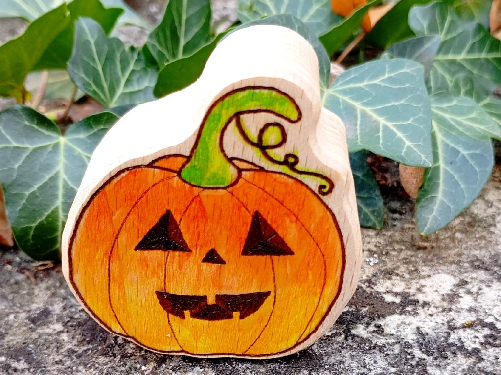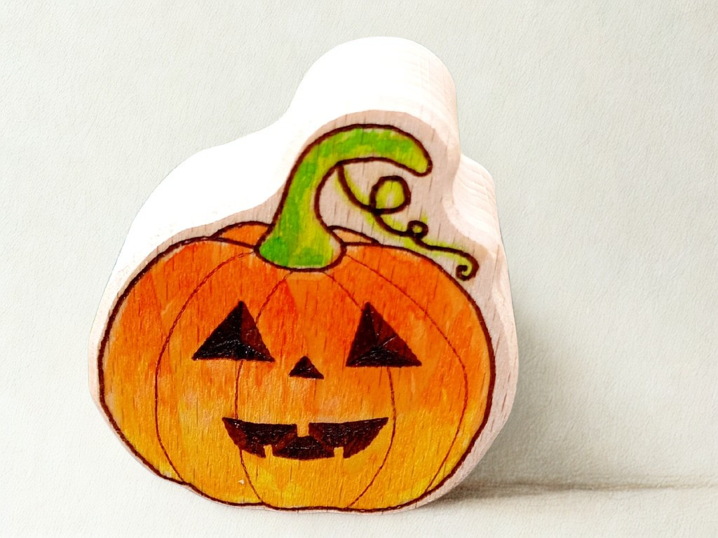 Roztomilá dřevěná dýně, která ozdobí sezonní poličku a zároveň poslouží jako drobná rekvizita pro otevřenou hru. Skvěle se hodí do podzimních aktivit, k tematickému „trick-or-treat“ tvoření i jako milý dárek pro koledníky. Autorský motiv vzniká v malé dílně a ladí s dalšími podzimními kousky od Dřevo z duhy.