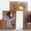 Dřevo z duhy – Halloween sada (3× kuk kostka + 1× malovaná)