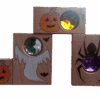 - 3× kuk-kostka (průhledné „sklíčko“) – motivy: pavouček (fialová), dýně (zlatá), duch (bílá)