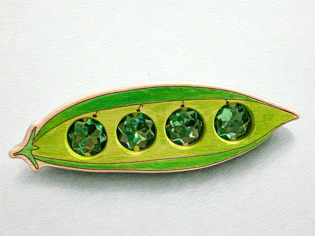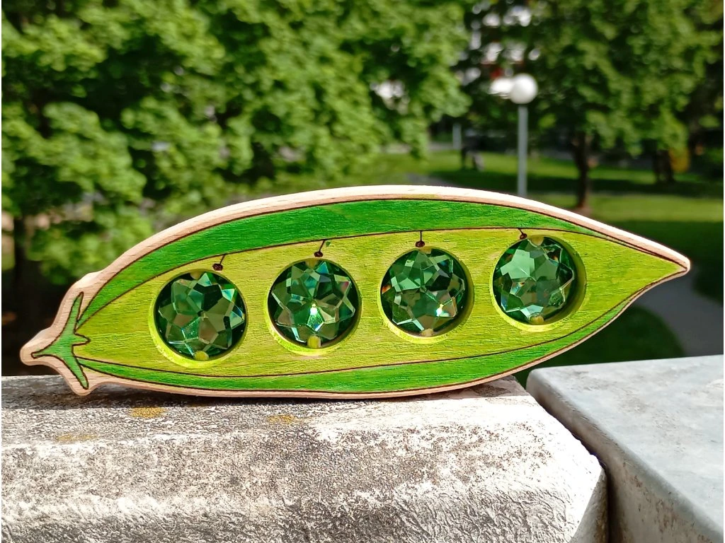 Tato osvěžující dřevěná kostka ve tvaru hrášku je ozvláštněná neprůhledným sklíčkem v zelené barvě, které se stává jemným vizuálním i hmatovým zážitkem. Kostka je inspirována letní zahrádkou a zapadá do řady objektů „ovoce a zelenina“, vhodných jak pro suché smyslové hraní, tak jako dekorace do dětské kuchyňky nebo obchodu. Součástí kolekce open-ended hraček, které povzbuzují kreativitu a přirozené objevování bez předem daného scénáře. Autorští výrobci Dřevo z duhy dbají na ekologii i bezpečnost — hračky odpovídají nejpřísnějším českým i evropským normám.