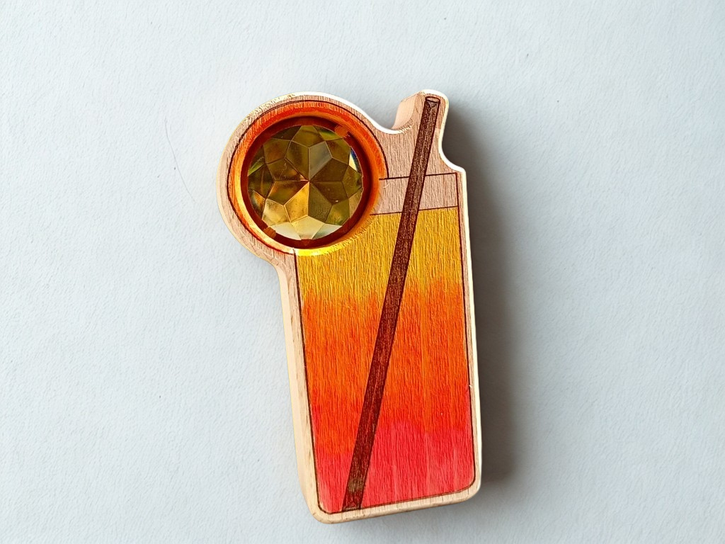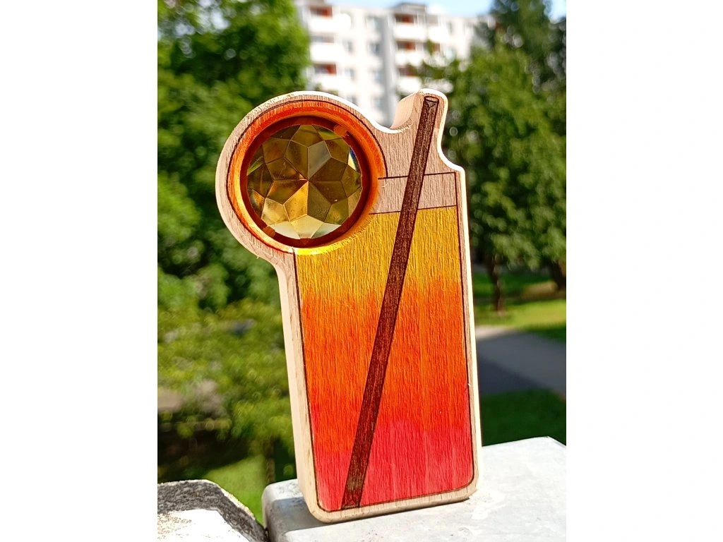 Limonáda je elegantní dřevěná kostka inspirovaná letními osvěžujícími nápoji, doplněná průhledným sklíčkem ve zlaté barvě. Tato skleněná vsuvka umožňuje hrát si se světlem — odráží sluneční paprsky a přináší do hry jemnou vizuální magii. Kostka je určena pro open-ended hraní, smyslové hraní i waldorfské prostředí, kde podporuje volnou kreativitu a objevování.