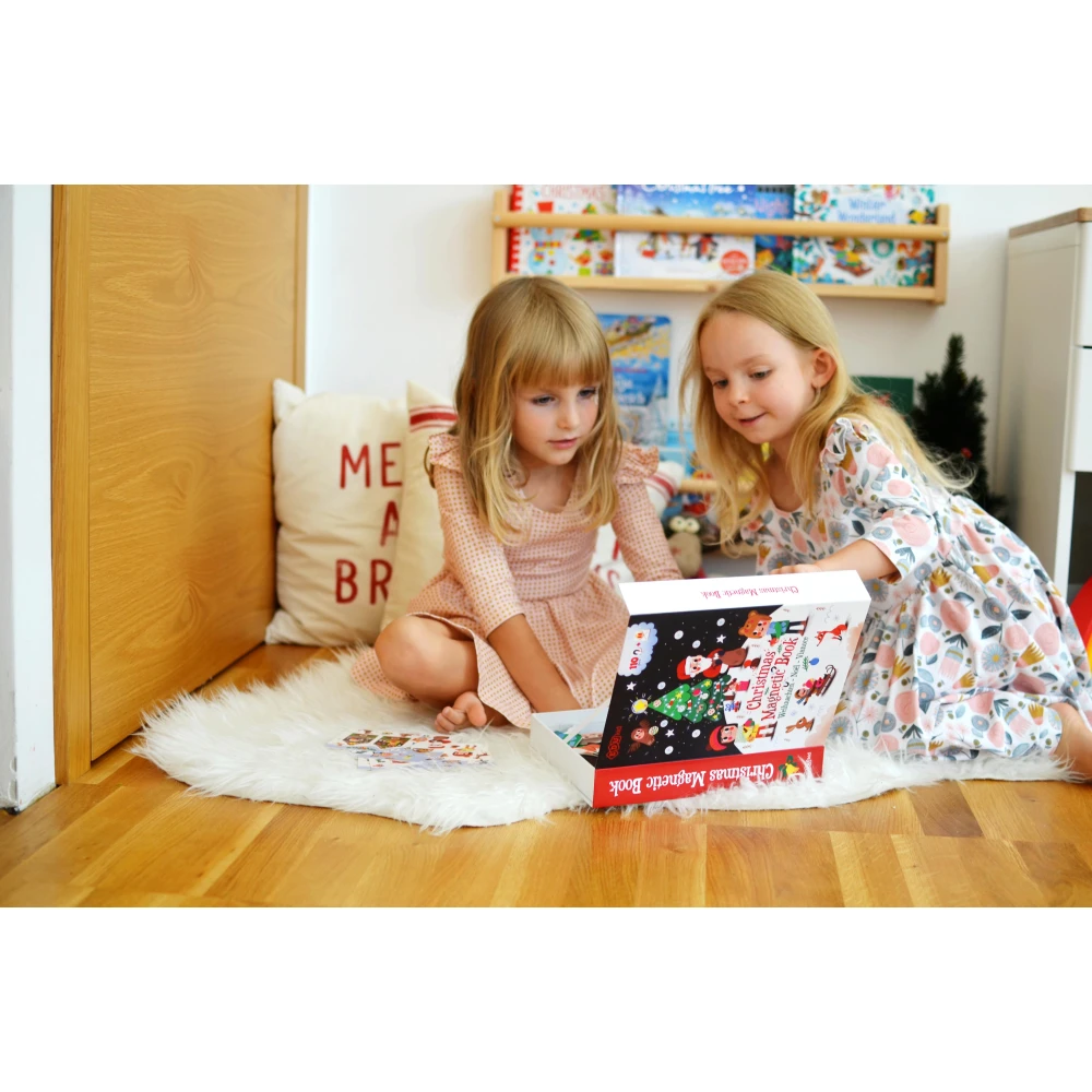 Zimní kouzlo v „knihové“ krabičce. Uvnitř čeká 110 magnetek s vánočními motivy a pevná magnetická podložka, na které děti tvoří vlastní scény – od stavění sněhuláka po zdobení stromku. Ilustrace navrhla slovenská ilustrátorka Edita Hajdu. Doporučeno od 3 let.