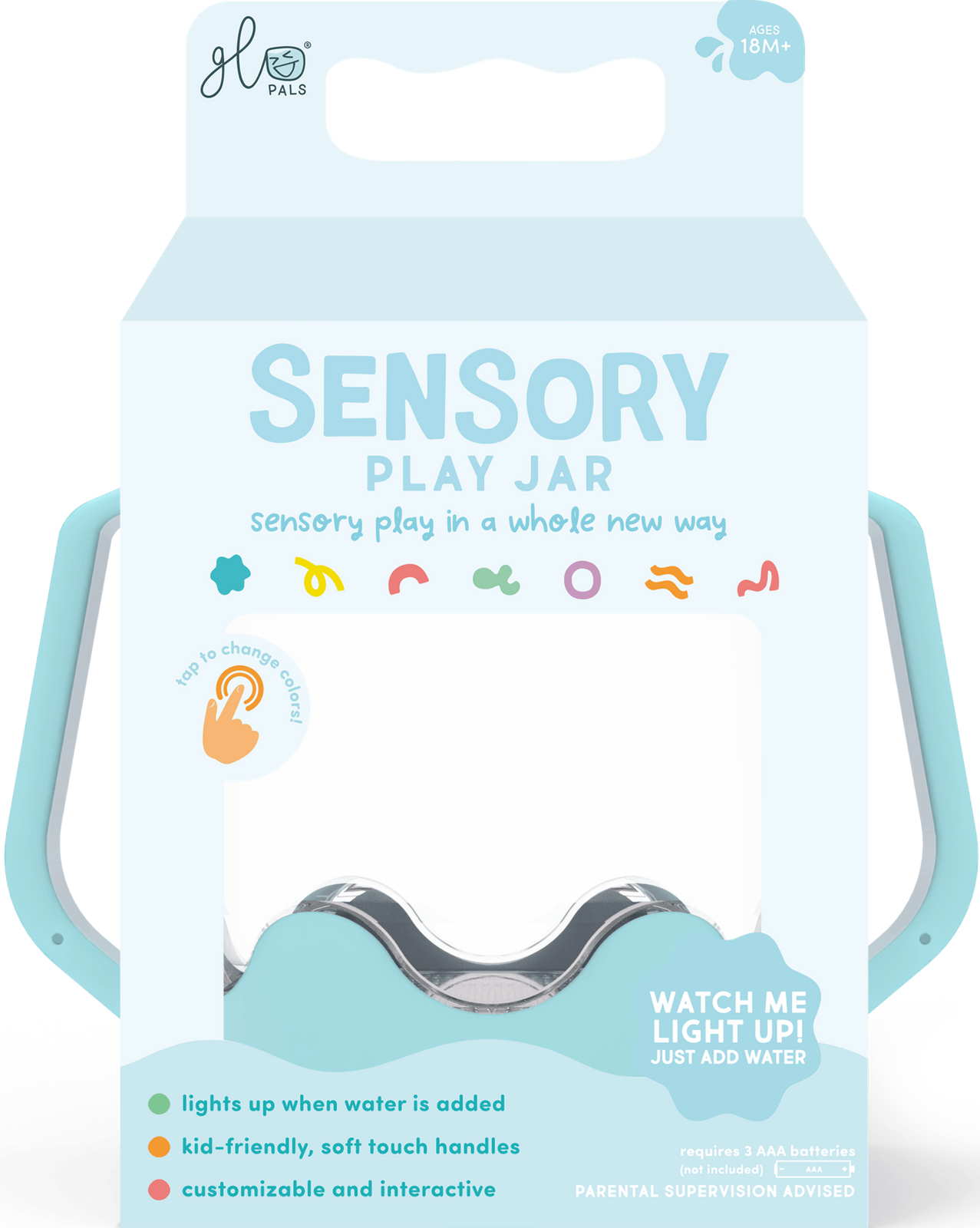 Objevte barevný svět senzorických lahví Glo Pals! Senzoricka lahev Glo Pals je dokonalá smyslová hračka – na hraní, učení a objevování světa!