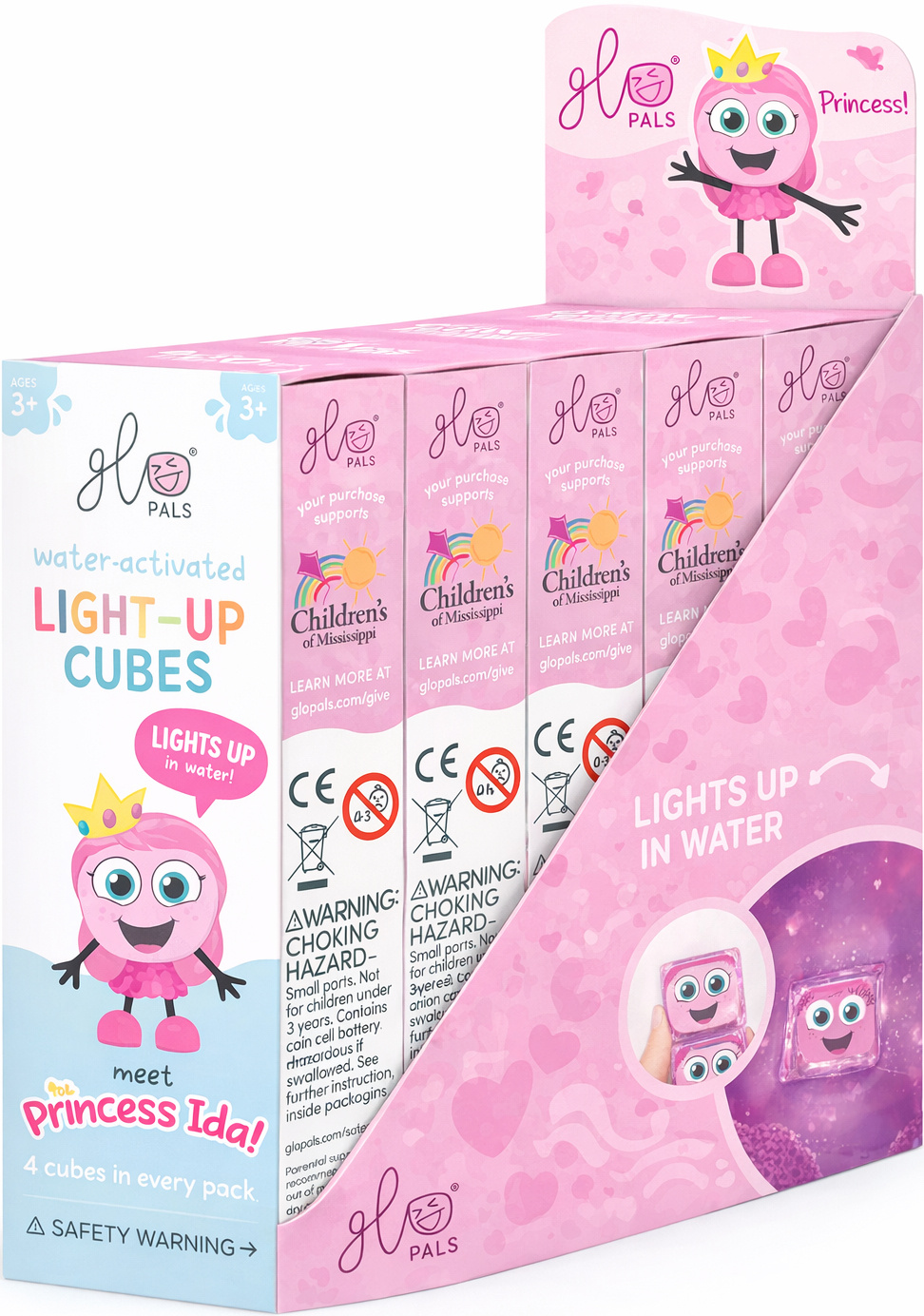 Svítící kostky do vody od značky Glo Pals promění každé koupání v kouzelný zážitek. Postavička Ida – něžná princezna – přináší jemné růžové světlo a zve děti do světa fantazie, kde se voda mění v pohádkové dobrodružství.