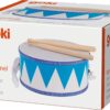 První rytmy, které nezboří byt. Dětský bubínek goki má příjemný, umírněný zvuk, takže se hodí na domácí „koncerty“, do herny i do školky. Díky nastavitelnému ramennímu popruhu si ho děti snadno zavěsí a mají volné ruce pro hru paličkami. Modro-bílý design je nadčasový a láká k objevování tempa, hlasitosti i jednoduchých rytmů. Doporučeno od 3 let.
