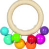 První smyslové objevování v barvách duhy. Dřevěný hmatový kroužek s barevnými korálky láká miminko k uchopení, třesení a prozkoumávání tvarů i zvuků. Podporuje úchopový reflex, koordinaci oko–ruka a soustředění – ideální pro první měsíce společné hry. Vyrobeno v Německu ze dřeva.