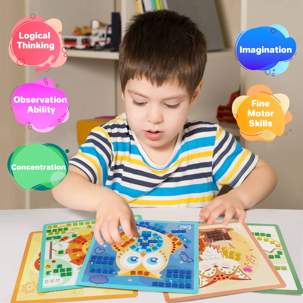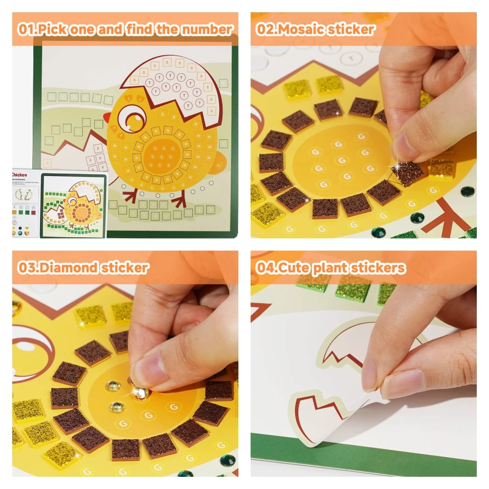 Objevte kouzlo tvoření bez nepořádku s mozaikovou sadou Mozaika Zvířata od značky Jarmelo. Děti mají možnost vytvořit si vlastní zvířecí hrdiny pomocí barevných pěnových čtverečků a třpytivých perleťových kamínků, které snadno přilepí na předtištěné kartičky – bez potřeby lepidla. Sada obsahuje 8 originálních zvířecích motivů – od krokodýla po rybku – a přehledný návod, který krok za krokem ukáže postupu tvorby. Kreativní zábava, která rozvíjí jemnou motoriku, trpělivost a fantazii, přitom zůstává čistá a přístupná i pro malé tvůrce, protože všechny dílky bez problémů drží na lepivém podkladu. Všechny materiály jsou bezpečné a netoxické, s vhodností pro děti od 3 let
