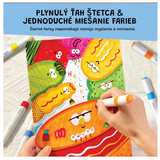 Každá fixka je vybavena pevným uzávěrem, který zajišťuje, že zůstanou vlhké a připravené k dalšímu použití – takto se tvoření nikdy nezastaví. Navíc jsou netoxické a bezpečné od 3 let, ideální pro nejmenší tvůrce, ale svou kvalitou potěší i školáky.