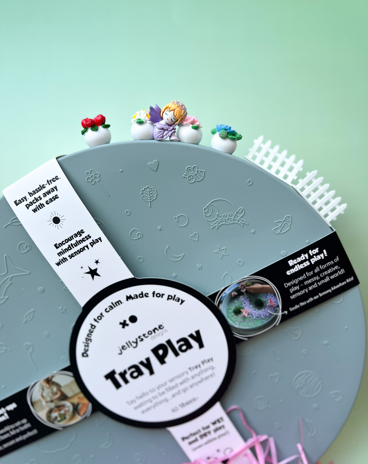 - Sada obsahuje vysoce kvalitní senzorické prvky (berušky, květiny, plotek, papírová výplň atd.).