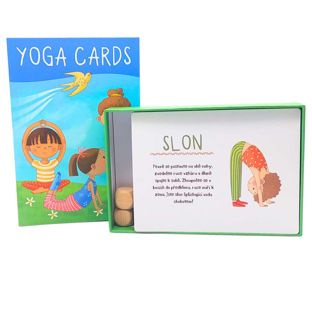 Každá hra zahrnuje procvičování konkrétní jógové polohy podle obrázku. Texty na kartách jsou k dispozici i v českém jazyce. Ukažte svým dětem, že pohyb může být zábava.