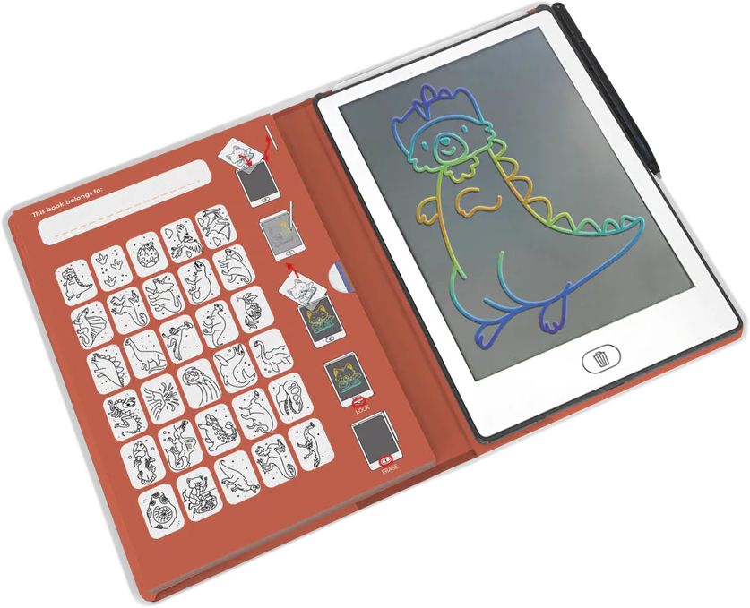 Tento tablet obsahuje 30 přenositelných ilustrací a 5 jedinečných motivů, které děti mohou obkreslovat nebo použít jako inspiraci pro vlastní výtvory, a jednoduché tlačítko pro mazání obrazovky. Díky funkci zámku obrazu lze aktuální kresbu uložit a pokračovat později, což je ideální při cestování i doma. Součástí balení je pero, 30 ilustrací a uživatelský manuál, baterie CR2025 je také zahrnuta.
