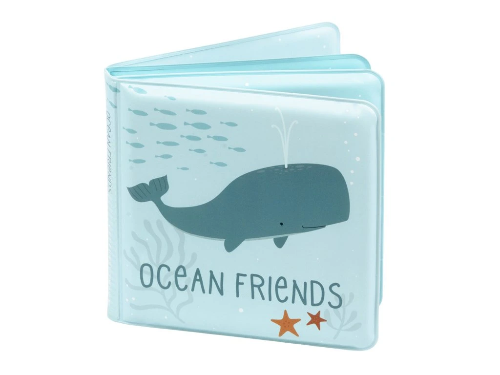 Knížka do koupele „Ocean Friends“ od A Little Lovely Company je zábavnou a edukativní hračku pro děti již od 18 měsíců. Měkké stránky z voděodolného pěnového EVA materiálu s roztomilými mořskými tvory (humr, velryba a chobotnice) promění koupání na skvělou hravou chvilku. Díky kompaktním rozměrům 12 × 12 × 3 cm se knížka vejde do dětské ručičky i koupelnového prostředí. Voda jí nevadí – plave a snadno se čistí, stačí ji po použití nechat oschnout , takže je ideální společník pro večerní koupání. Design “Ocean Friends” v přírodních tónech vtáhne děti do světa zvířátek a podpoří jejich představivost a smysl pro příběh.