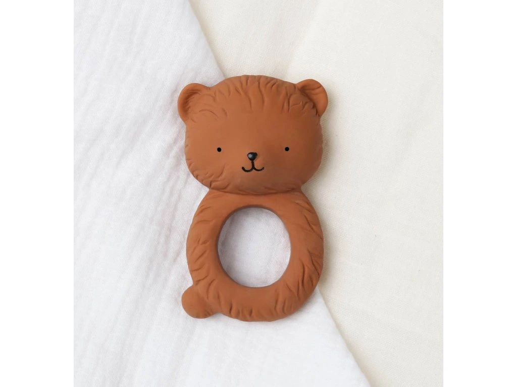 Roztomilé kousátko ve tvaru medvídka uleví citlivým dásním a zároveň zabaví miminko v období růstu prvních zoubků. Je vyrobené ze 100% přírodního kaučuku ze stromu Hevea, je měkké, poddajné a příjemné do malých ruček. Díky hladkému i jemně strukturovanému povrchu masíruje dásně a pomáhá zmírnit nepohodlí při prořezávání. Minimalistický tvar bez otvorů se snadno čistí – stačí opláchnout mýdlovou vodou a otřít. Skvělý tip i jako drobný dárek pro čerstvé rodiče.