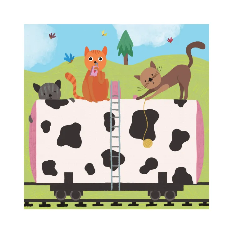 - dvě herní/poznávací scény: nákladní vs. osobní vlak; roční období, barvy, zvířátka, postavy,