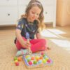 Děti od 3 let si při hře s touto montessori sadou rozvíjejí dovednosti v oblasti porovnávání, vytváření vzorů, sekvencí a jemné motoriky.