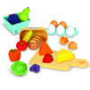 Tato 27dílná sada zahrnuje: prkýnko, bedýnku na ovoce, košík, plato na vajíčka, 6 otevíracích vajec a 11 dalších herních potravin.