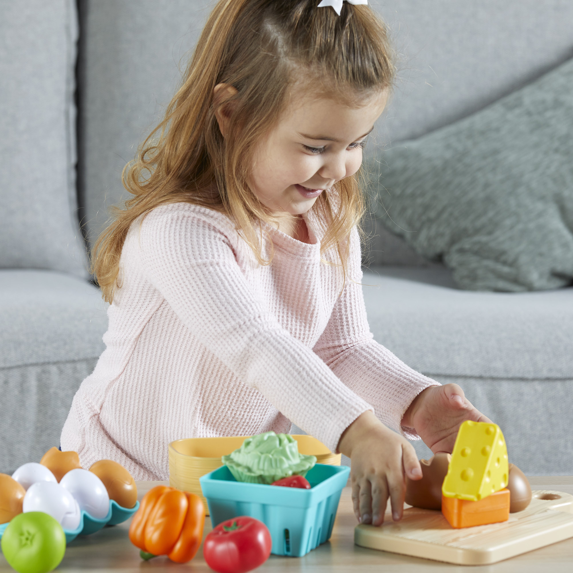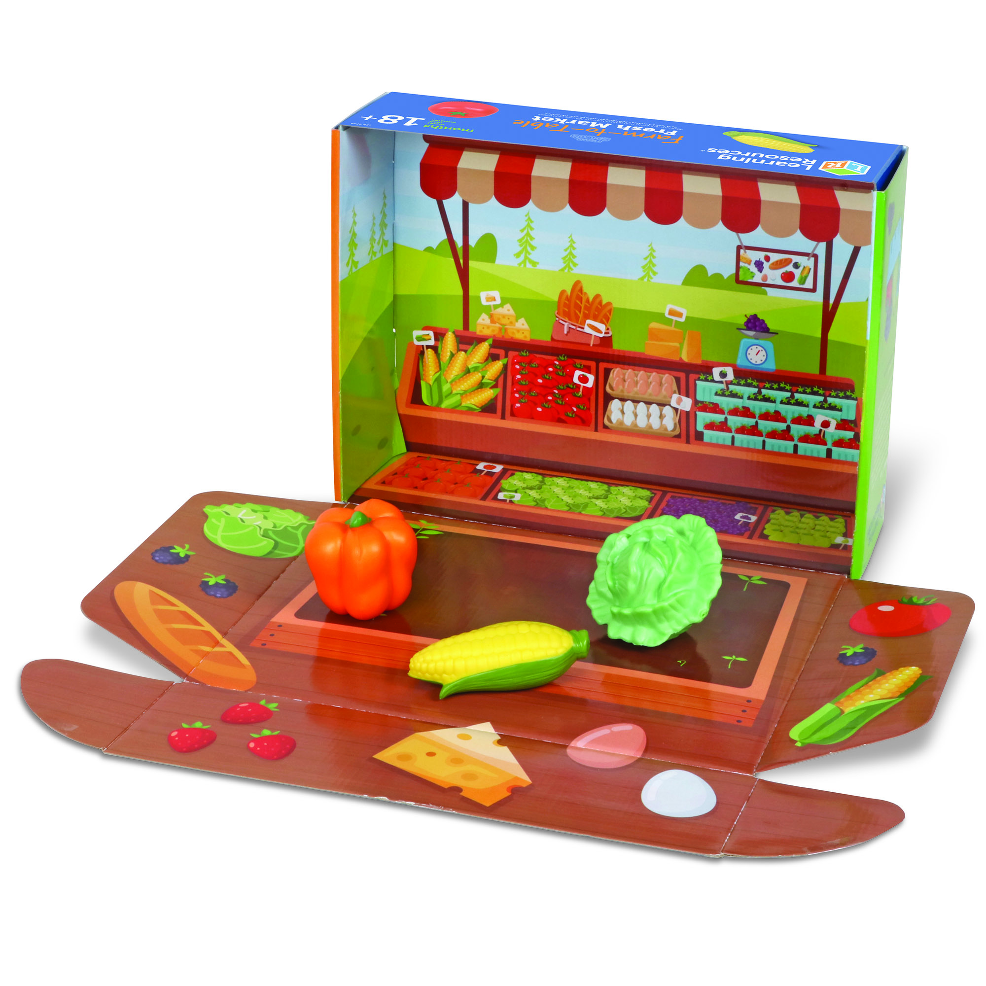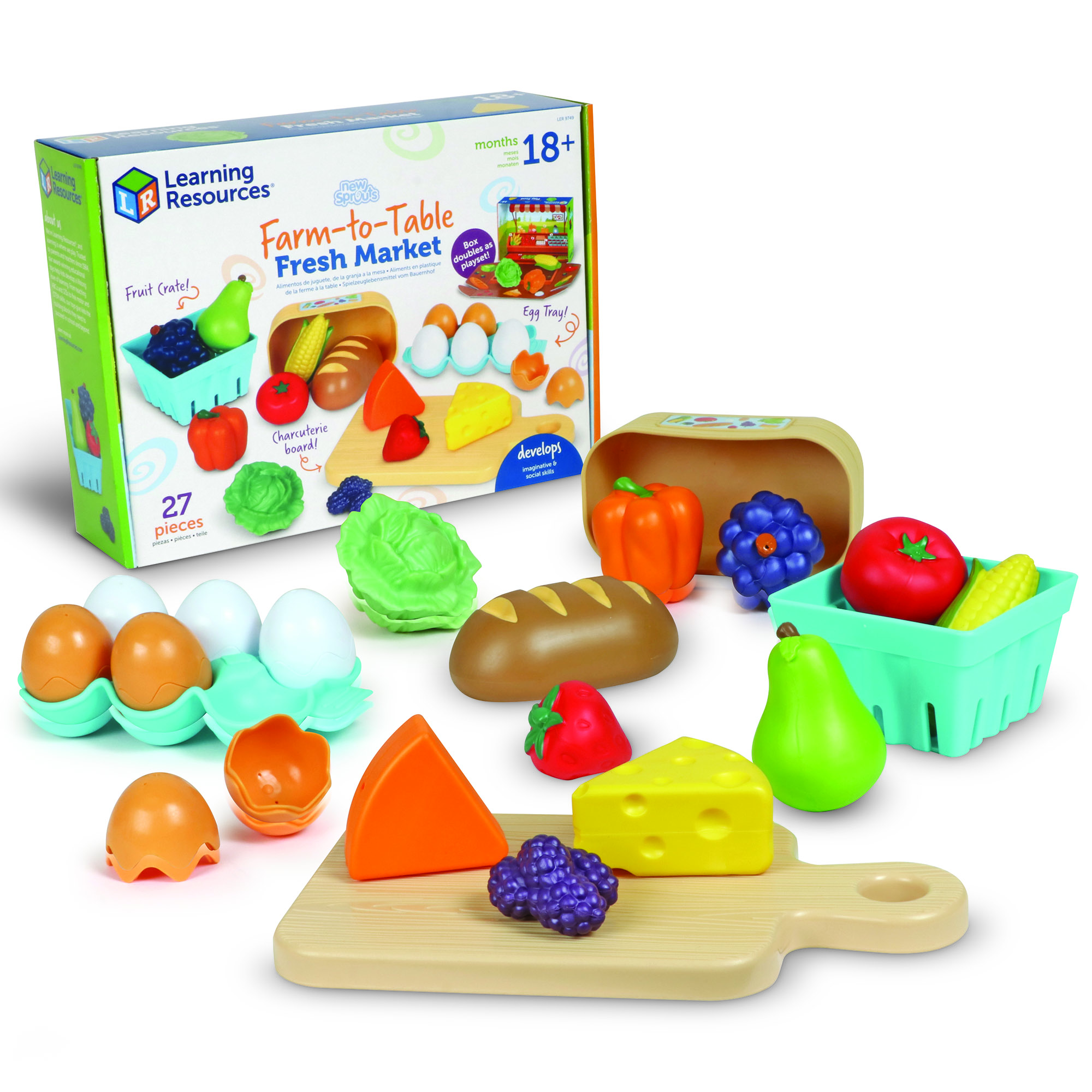 Ideální pro hru na obchod! Sada New Sprouts® Farm to Table Fresh Market obsahuje vše, co malí kuchaři potřebují pro zábavu na farmářském trhu.
