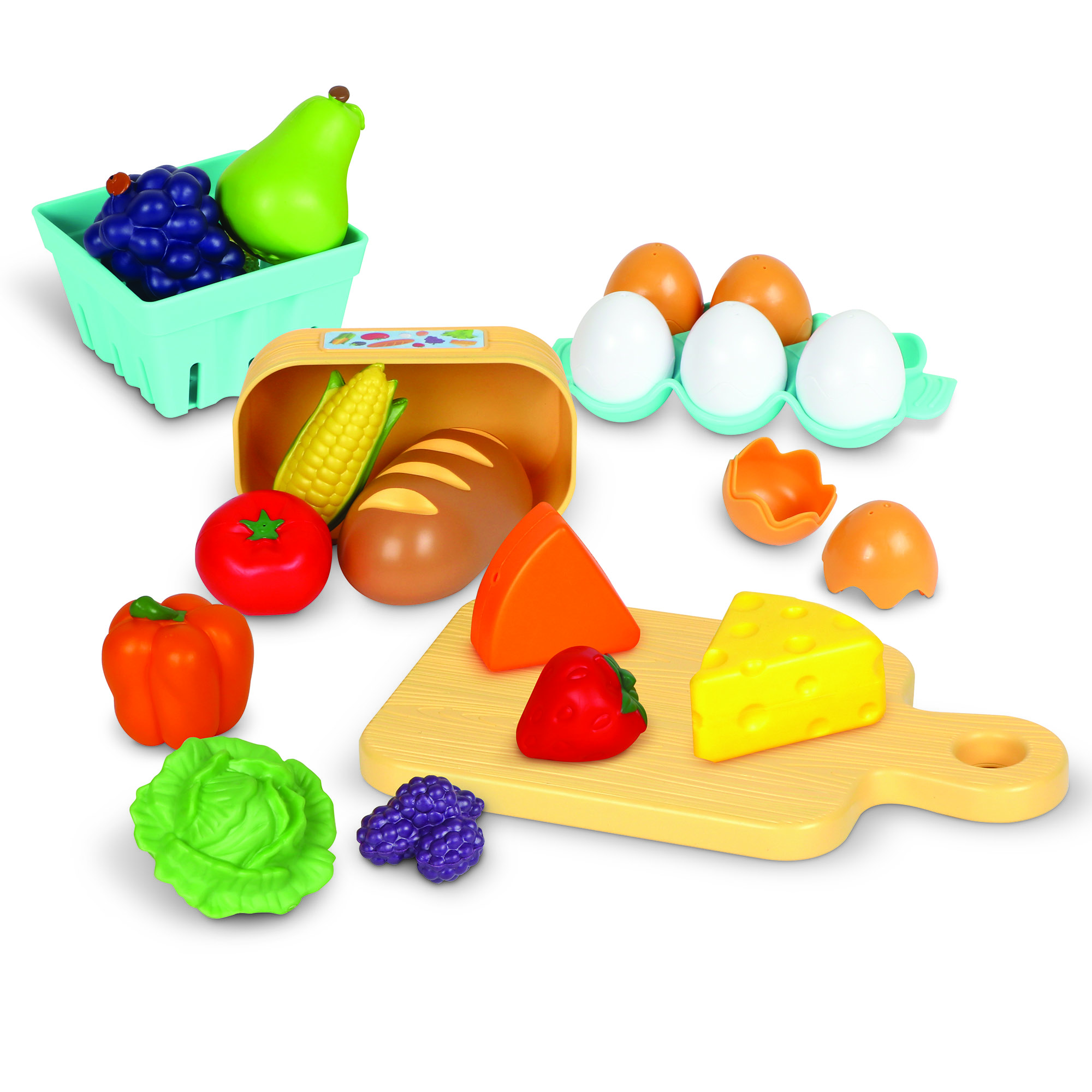 Tato 27dílná sada zahrnuje: prkýnko, bedýnku na ovoce, košík, plato na vajíčka, 6 otevíracích vajec a 11 dalších herních potravin.