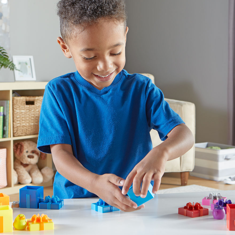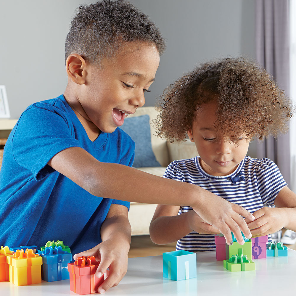 Counting Surprise Party™ je hravá vzdělávací sada, která děti zve k rozbalování barevných dárkových krabiček s překvapením. V každé z deseti číslovaných krabiček se nachází malá figurka – například robůtek, letadlo nebo medvídek – a děti tak mají za úkol odhalit, co se skrývá uvnitř. Přitom rozvíjejí smysl pro barvy, čísla a spojování vizuálních prvků. Hra podporuje též možnost kreativního přetváření – krabičky lze znovu balit, rozbalovat nebo využít v dalších hrách.