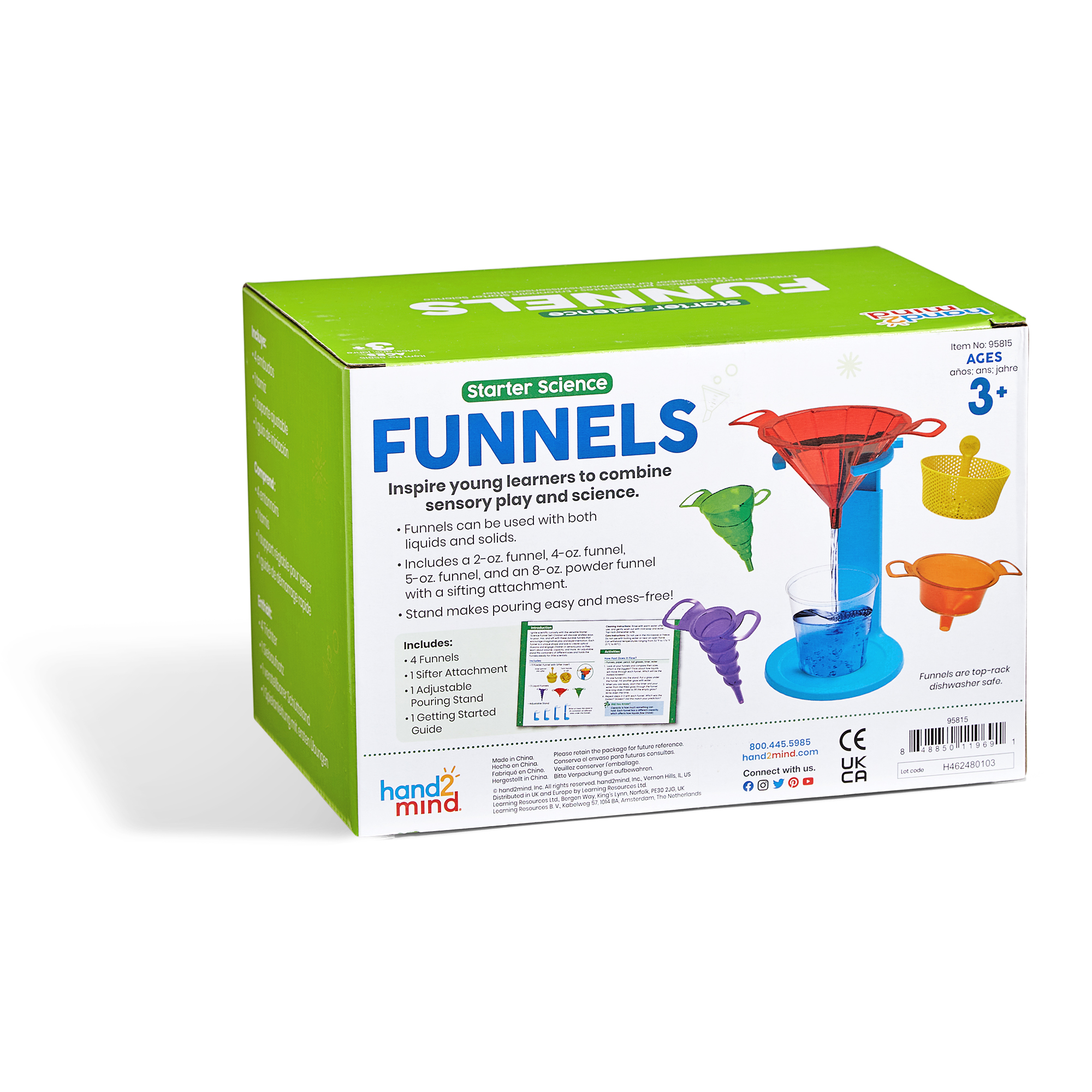 Zažeňte vědeckou zvědavost pomocí všestranných Starter Science Funnels. Děti objeví nekonečné způsoby, jak nalévat, míchat a prosévat s těmito odolnými nálevkami, které podněcují nápaditou hru a experimentování. Každý trychtýř má jedinečný tvar a velikost, aby vytvořil optické iluze a zapojil děti do smyslové hry, když se učí o objemu, kapacitě a dalších věcech.