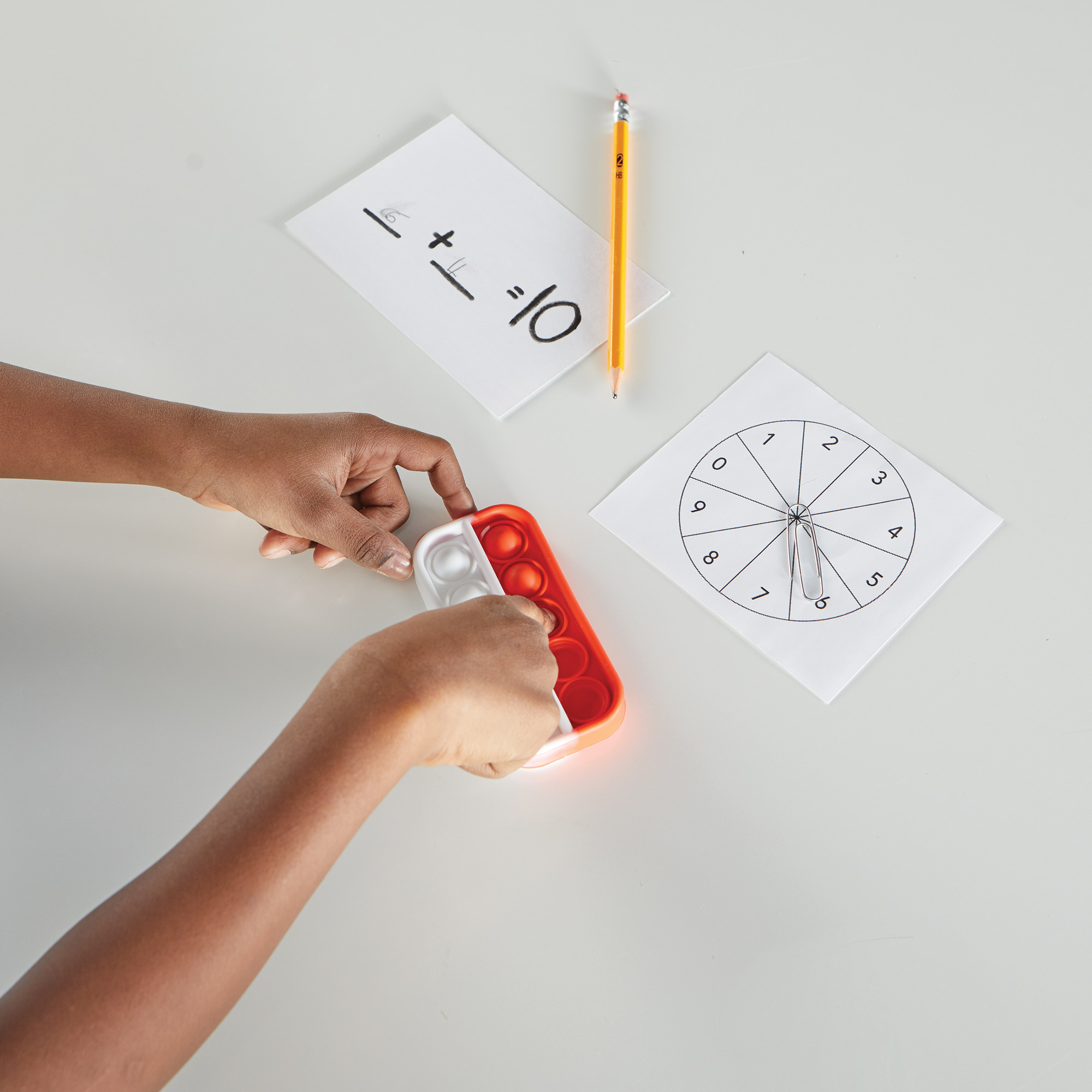 1 barevný senzorický ten-frame popper – s bublinkami, které lze opakovaně stisknout a „popnout“ pro procvičování počítání a manipulaci.
