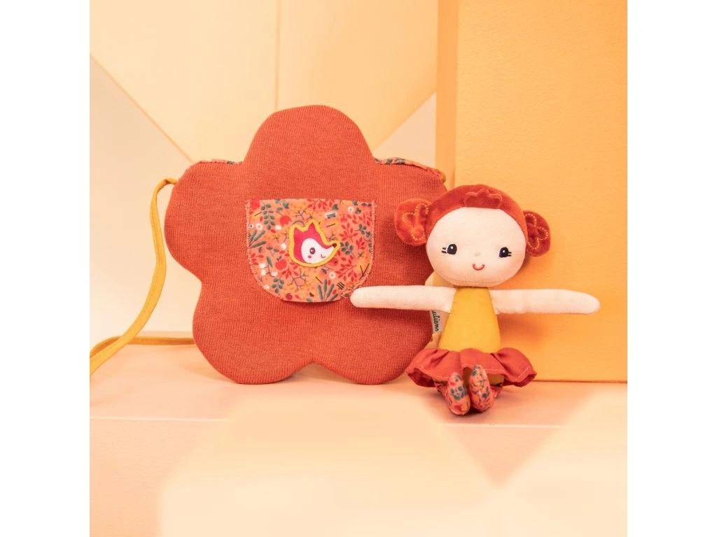 - Dvě radosti v jednom: květinová kabelka + panenka Adèle v přední kapsičce.