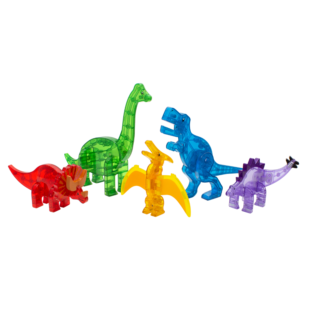 - Motivaci pro hraní a objevování: Dinosauři v sadě mají pohyblivé části, živé barvy a jsou kompatibilní s magnetickými stavebnicemi – rozšiřují prostor pro hru.