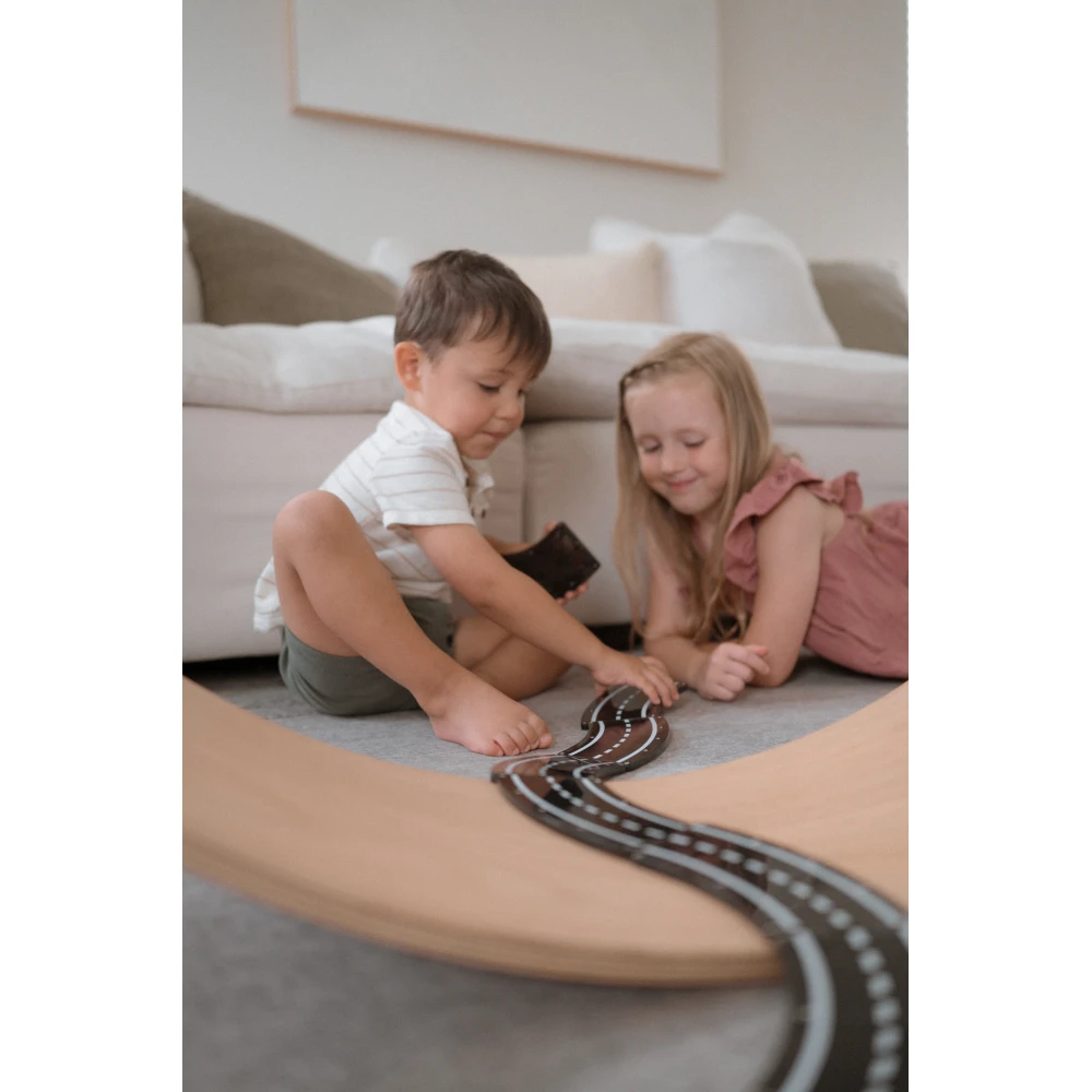 Sada obsahuje 12 magnetických dílků – 8 zatáček (45°) a 4 silniční čtverce, které lze libovolně kombinovat s ostatními sadami MAGNA-TILES. Spojením s dalšími stavebnicemi vznikají celé městské projekty, staveniště nebo závodní tratě plné fantazie.