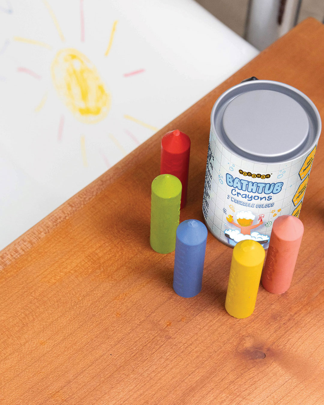 Proměňte každodenní koupání v tvořivý zážitek. Přírodní voskovky do vany Medenka umožní dětem kreslit přímo na stěny vany, sprchového koutu nebo obklady – a vytvořit si tak vlastní malý svět plný barev.