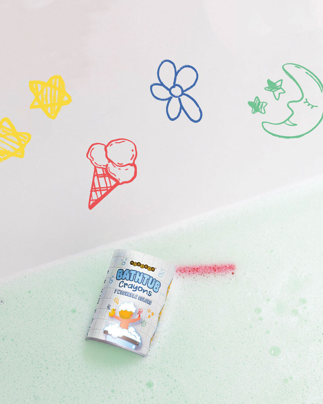 Po koupání stačí obrázky jednoduše smýt teplou vodou a houbičkou – bez drhnutí a stresu. Koupel se tak stává nejen hygienou, ale i hravou a kreativní chvilkou, na kterou se děti budou těšit.