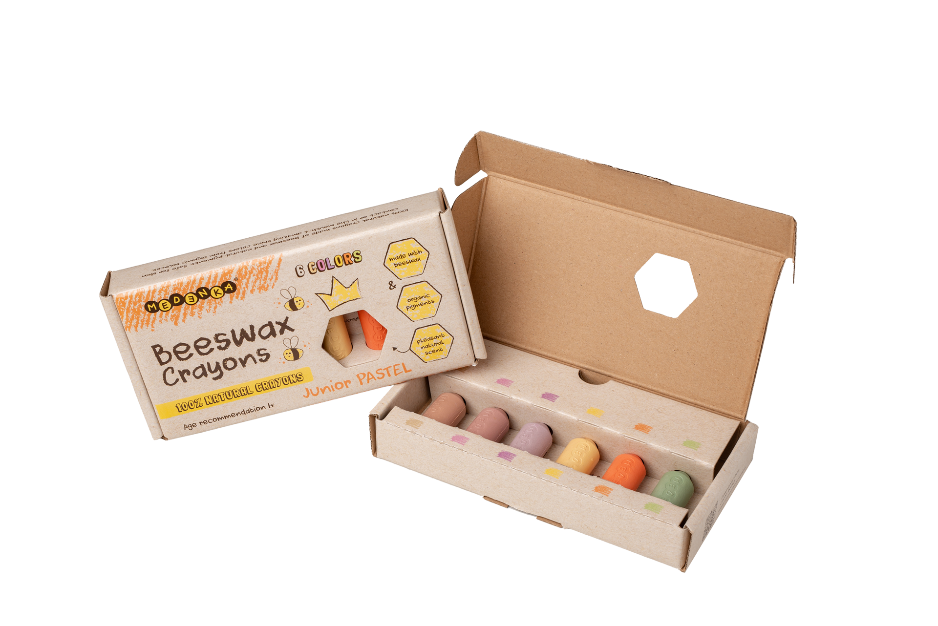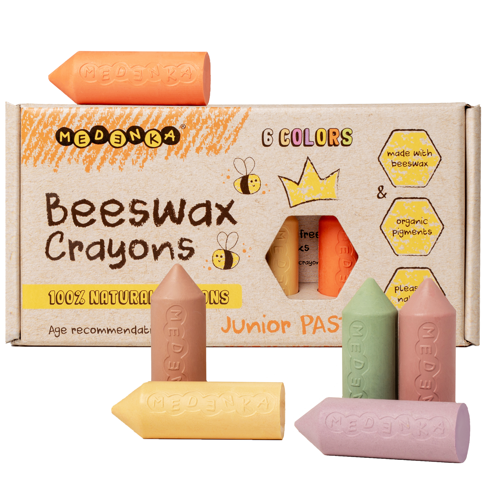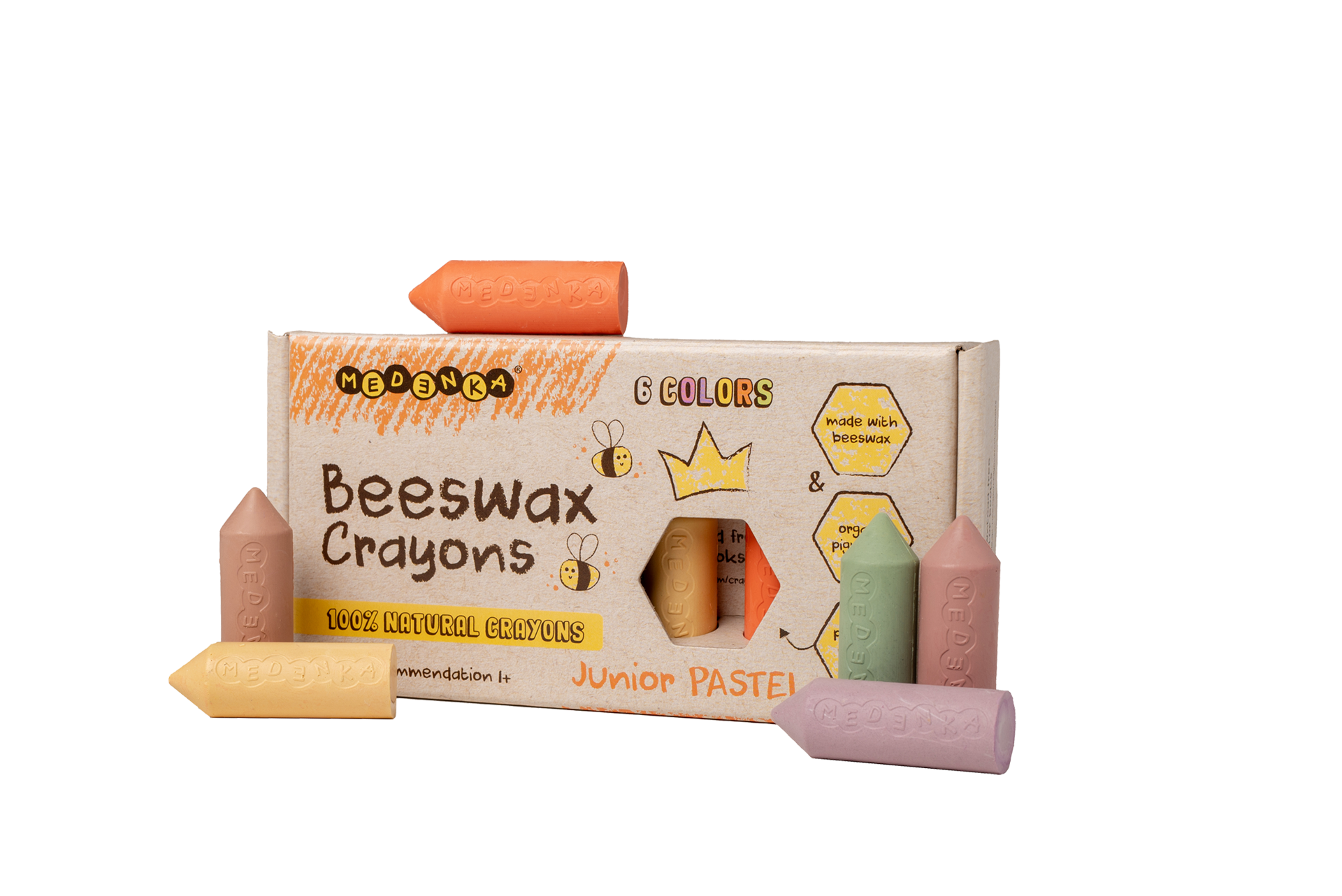 Přírodní voskovky Medenka Junior jsou navržené speciálně pro nejmenší děti od 1 roku. Jsou vyrobené z čistého včelího vosku a organických pigmentů, díky čemuž jsou maximálně bezpečné i při kontaktu s pokožkou nebo ústy.