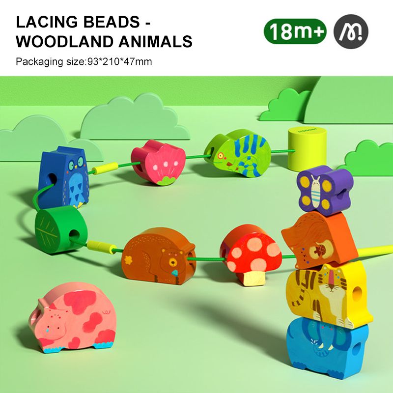Mideer: Naučná hra Dětské navlékání Les a zvířátka (12 ks)